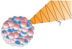 Illustration of an emission of a gamma ray from an atomic nucleus.